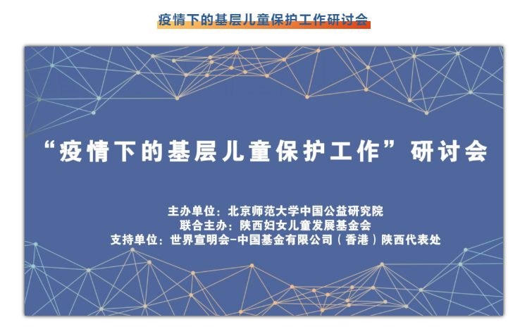 基于以上背景,由世界宣明會(huì)支持,北京師范大學(xué)中國(guó)公益研究院、陜西婦女兒童發(fā)展基金會(huì)舉辦“疫情下的基層兒童保護(hù)工作”研討會(huì)2020。